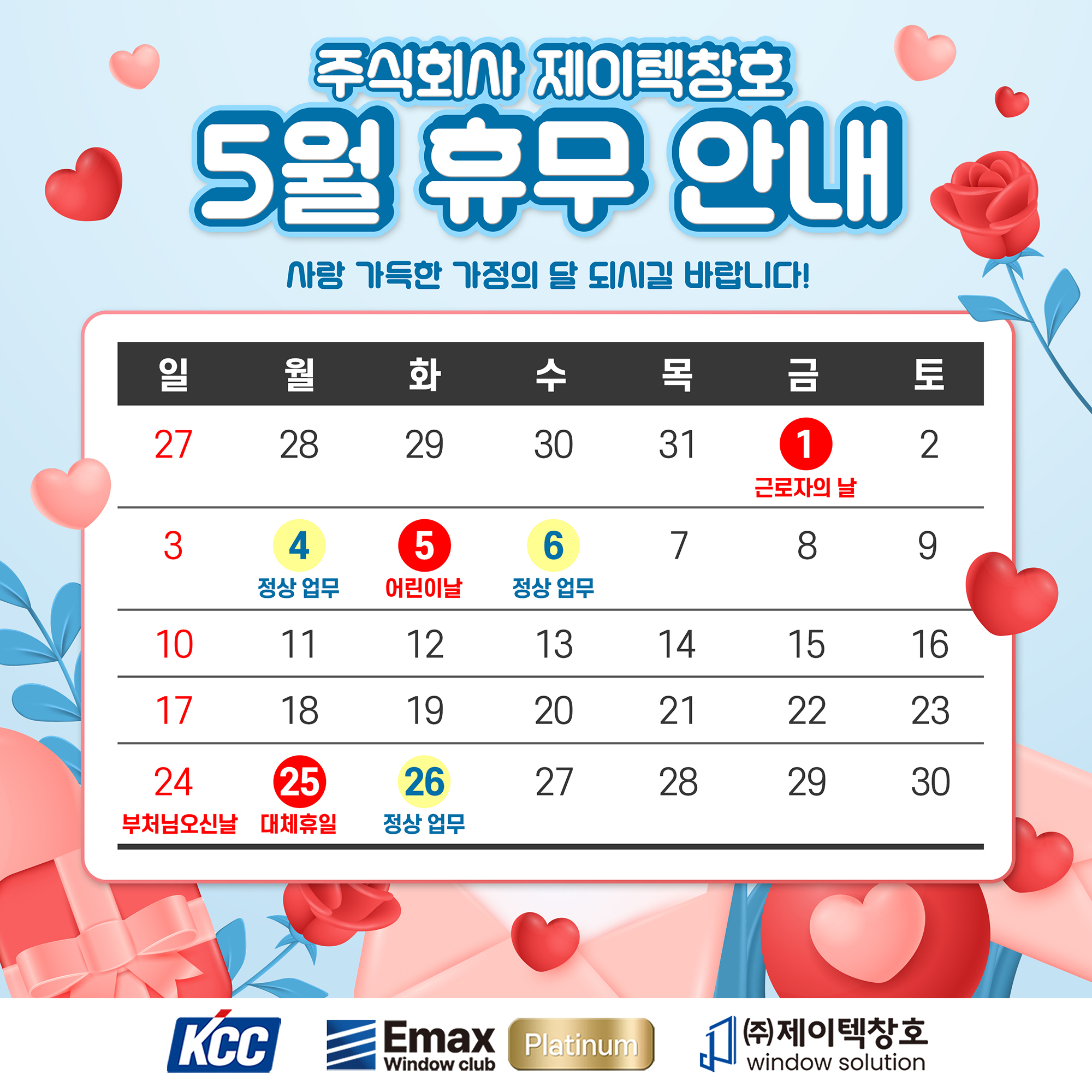 | Á¦¸ñ | 2026³â 5¿ù °¡Á¤ÀÇ ´Þ ÈÞ¹« ¾È³» |